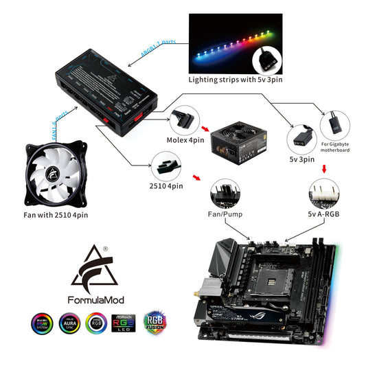Lighting Manual Controller FormulaMod 5v 3pin A- Rgb Molex 4pin Powered For Aura Fans / Lightings