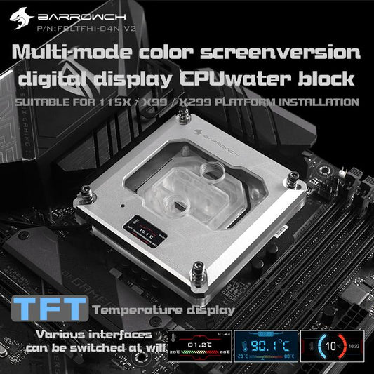 Barrowch For Intel AMD Lga115X/1700/X99/X299 Platform CPU Water Cooling Block With TFT Digital Display, FBLTFHI-04I FBLTFHA-04N V2A