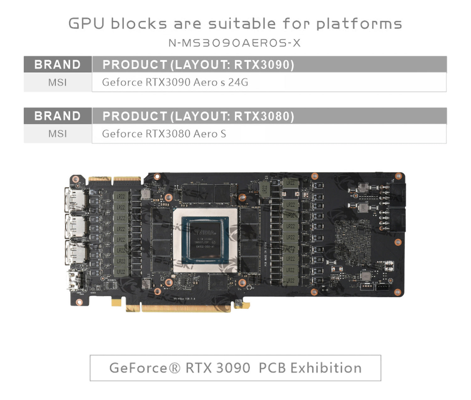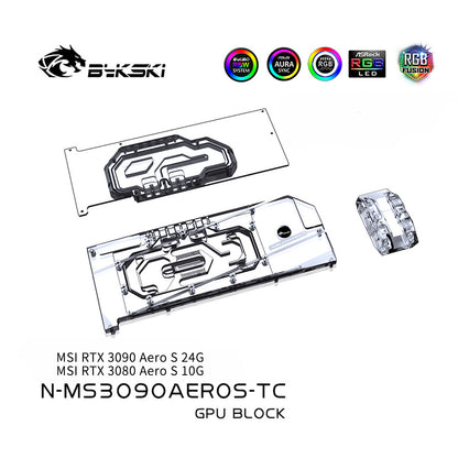 Bykski GPU Block With Active Waterway Backplane Cooler For MSI RTX 3090/3080 Areo S, N-MS3090AEROS-TC