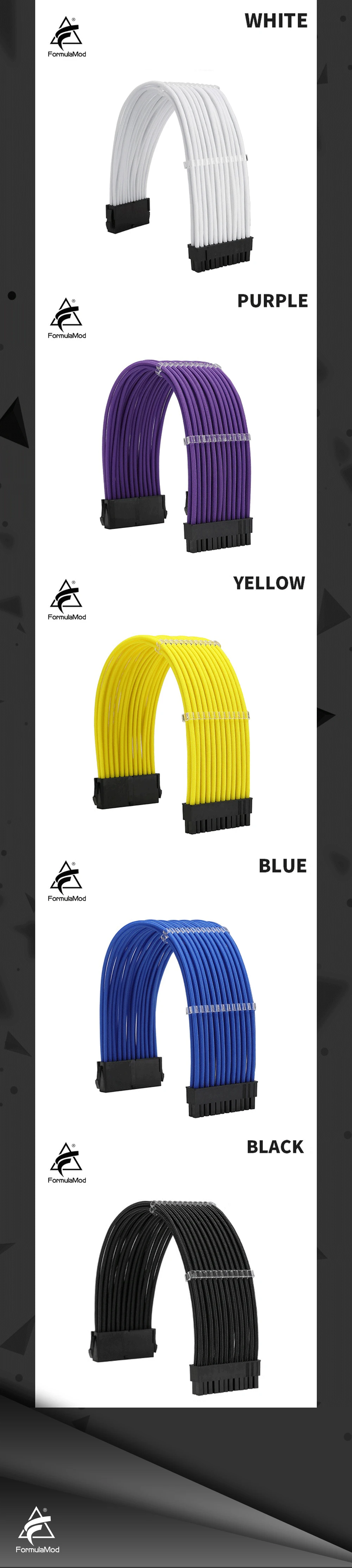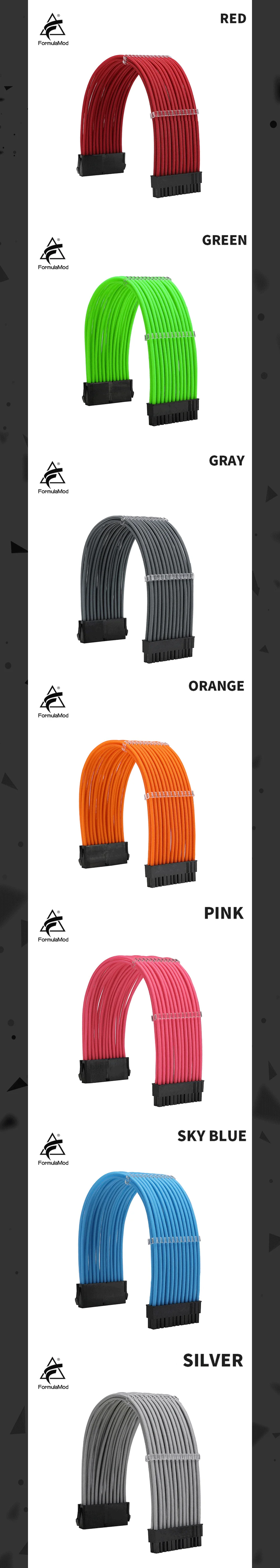 FormulaMod Fm-N24P ATX 24Pin(20+4) Power Extension Cable For Motherboard 24 Pin 18AWG Solid Color Cables With Cable Comb