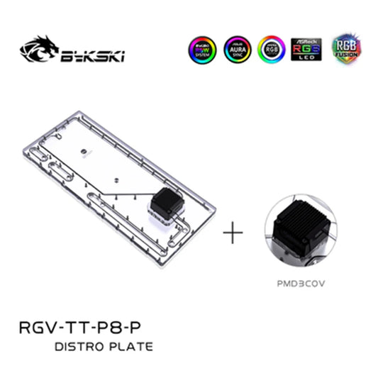 Bykski Distro Plate For Thermaltake Core P8 Case, Acrylic Waterway Board Combo DDC Pump, 5V A-RGB , RGV-TT-P8-P