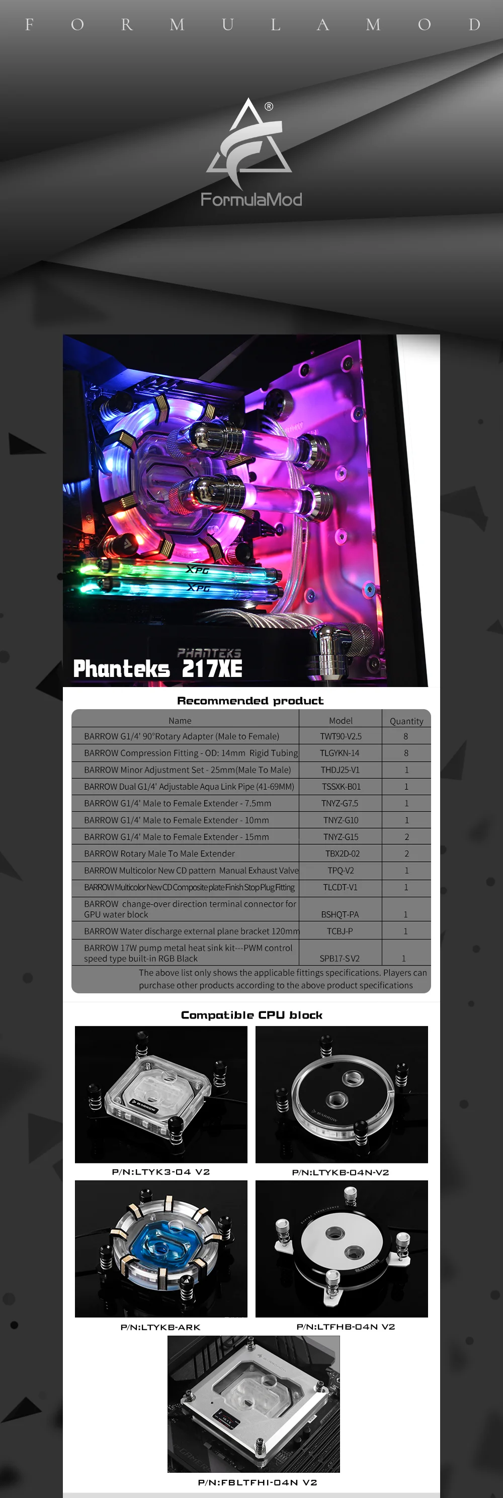 Barrow Waterway Boards, For Phanteks 217XE Case, For Intel CPU Water Block & Single GPU Building, PH217XE-SDB