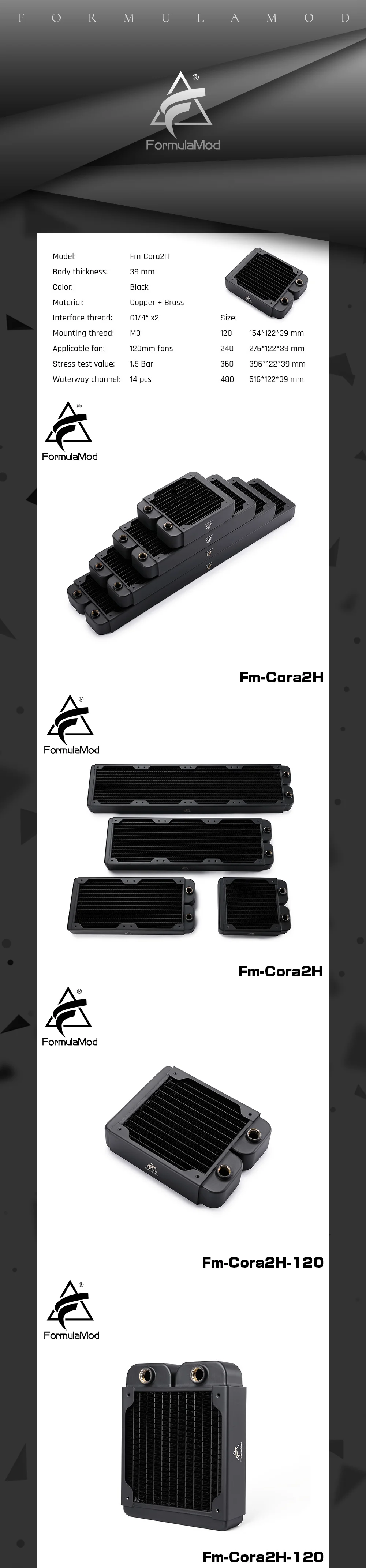 FormulaMod Fm-CoRa2H 39mm Thickness Copper Radiator 120/240/360/480mm Black Radiators Suitable For 120Fans
