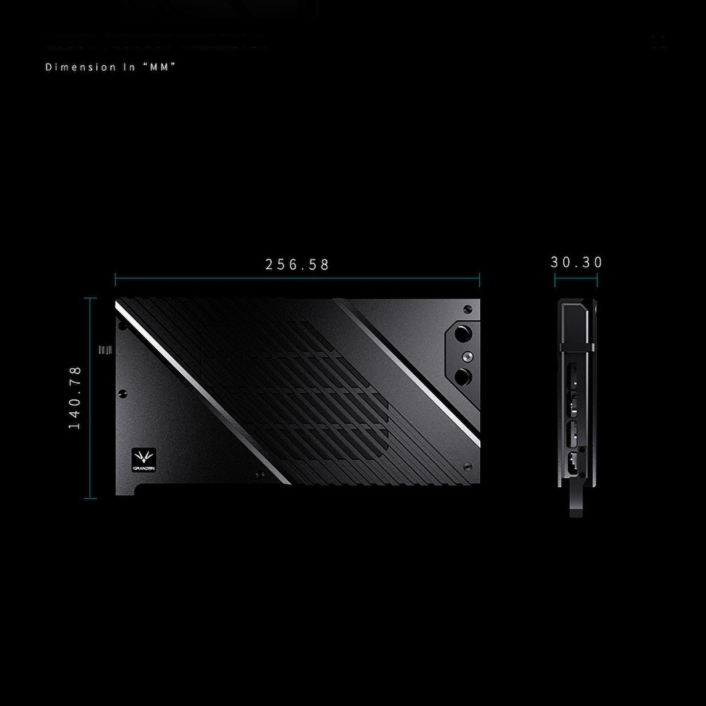 Granzon gives you the power to perform at your peak and create stunning visuals. We push the boundaries of innovation, and our products are unrivaled in quality. Our products are a perfect blend of art and technology. This full coverage block directly cools the graphics cards core (GPU), graphics memory (RAM), and voltage regulator modules (VRM). By directly cooling these components, you can achieve great temperatures and reach higher overclocks or extend the overall lifespan of your card by running at below-factory temperatures.
