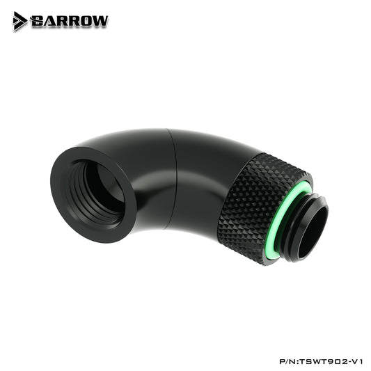 Barrow G1/4''Thread 90 Degree Two Rotary Fitting, Adapter Rotating 90 Degrees Water Cooling Adaptors, TWT90S-V2