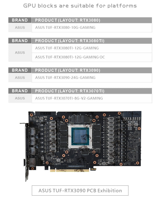 Bykski GPU Block With Active Waterway Backplane Cooler For Asus TUF RTX 3090/3080Ti/3080/3070Ti Gaming, N-AS3090TUF-TC