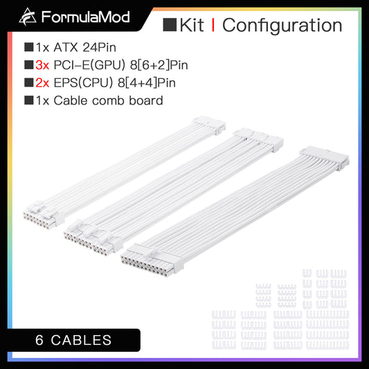 FormulaMod Special Configuration Advanced PSU Extension Cable Kit, Hot Sale All White Kit, Sleeved PSU Cable Combo, 300mm High Compatibility With Combs, ATX 24Pin / PCI-E GPU 8Pin / EPS CPU 8Pin, Fm-NCK1-I