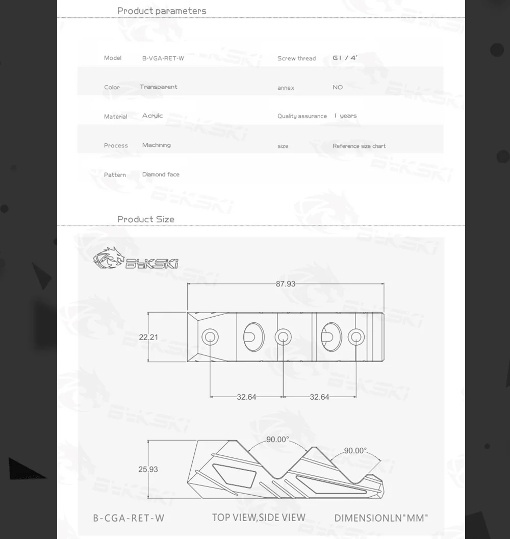 Bykski GPU block 45 Degree Bridge Module, For Bykski GPU Block Replace The Original Bridge, B-VGA-RET-W