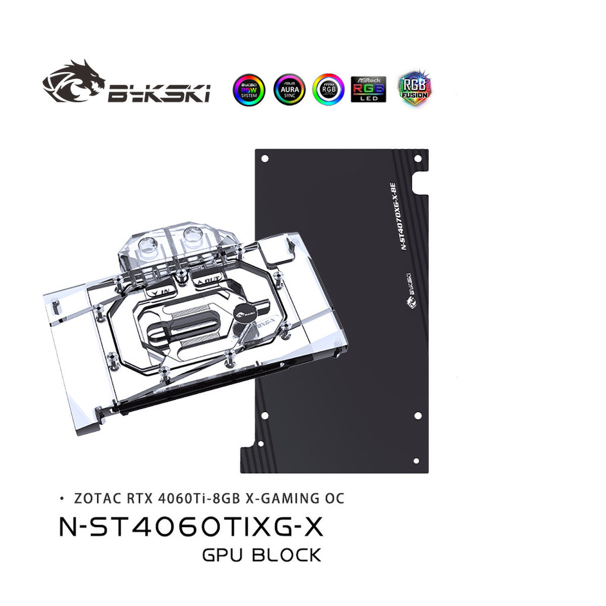 Bloque de agua Bykski para GPU Zotac RTX 4060 Ti-8GB X-GAMING OC, cobertura completa con placa trasera, refrigerador de agua para PC, N-ST4060TIXG-X
