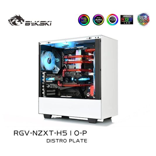 Bykski Distro Plate Kit pour boîtier de flux NZXT H510, boucle complète A-RGB 5 V pour bâtiment PC à GPU unique, carte de voie navigable de refroidissement par eau, RGV-NZXT-H510-P