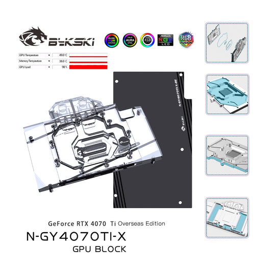 Bykski GPU Water Block For Galax GeForce RTX 4070 Ti Overseas Edition, Full Cover With Backplate PC Water Cooling Cooler,N-GY4070TI-X