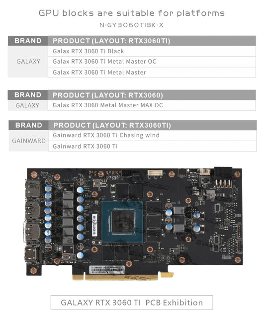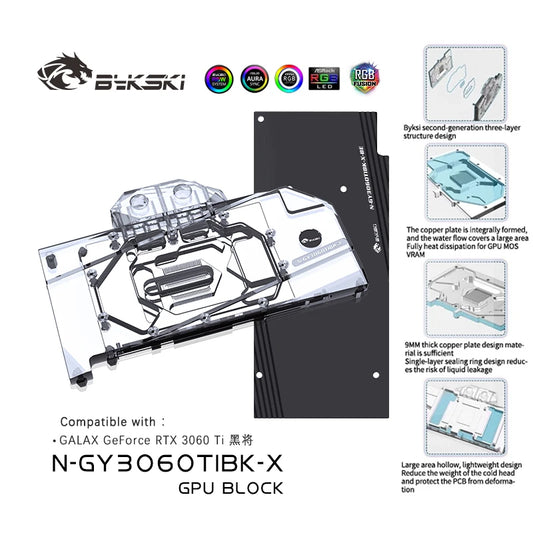 Bloc d'eau Bykski GPU pour Galax / Palit / PNY / Gainward / Manli / Inno3D / Yeston RTX3060 3060Ti, refroidisseur de liquide de refroidissement par eau de radiateur, N-GY3060XJ-X