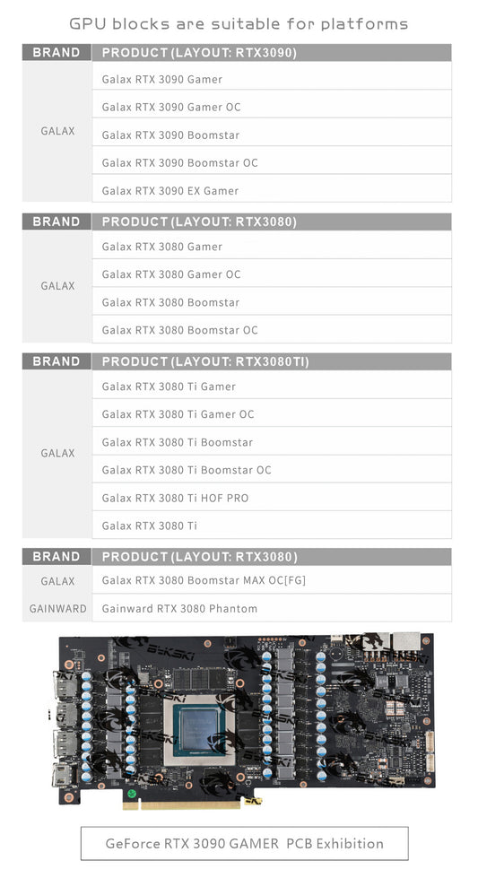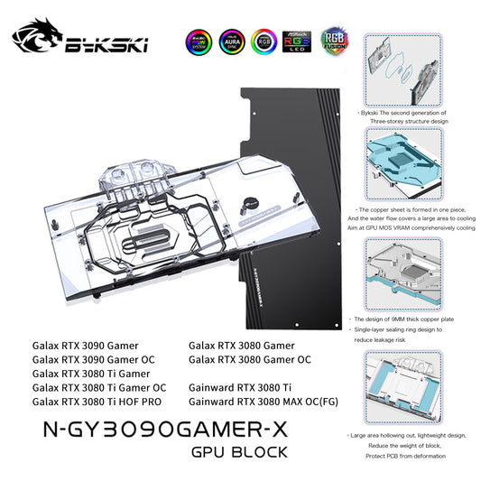 Bykski N-RTX3090H-X-V2 bloc de refroidissement par eau GPU pour GALAXY Palit KFA2 Maxsun Leadtek Gainward RTX 3080 3090