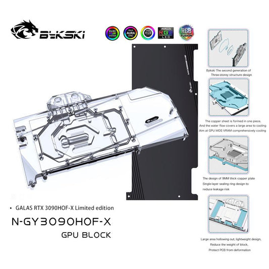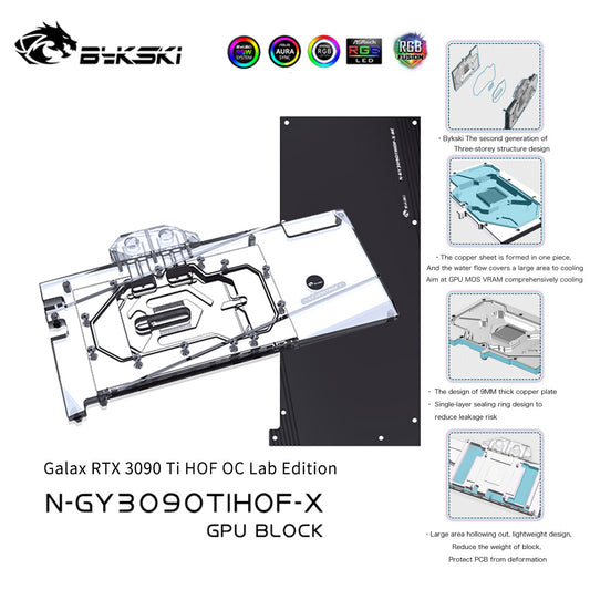 Bloc d'eau GPU Bykski pour Galax RTX 4090 HOF OC Lab Plus, couverture complète avec refroidisseur de refroidissement par eau pour PC de plaque arrière, N-IG3060TIMINI-X
