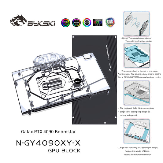 Bloc d'eau GPU Bykski pour Galax RTX 4090 Boomstar, couverture complète avec refroidisseur de refroidissement par eau PC de plaque arrière, N-GY4090XY-X