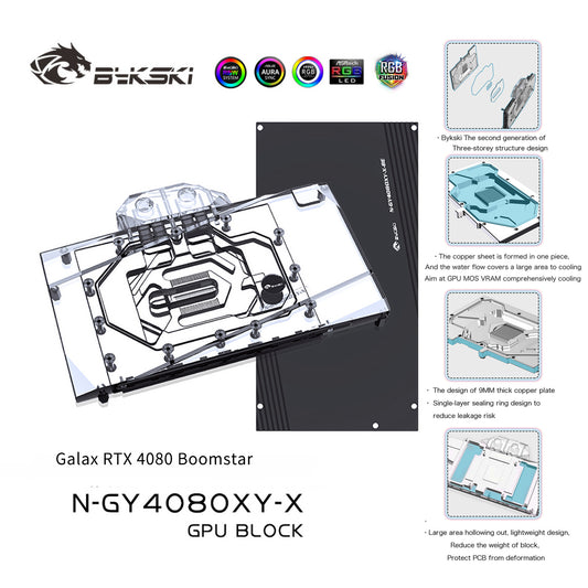 Bloc d'eau GPU Bykski pour Galax RTX 4080 Boomstar, couverture complète avec refroidisseur de refroidissement par eau PC de plaque arrière, N-GY4080XY-X