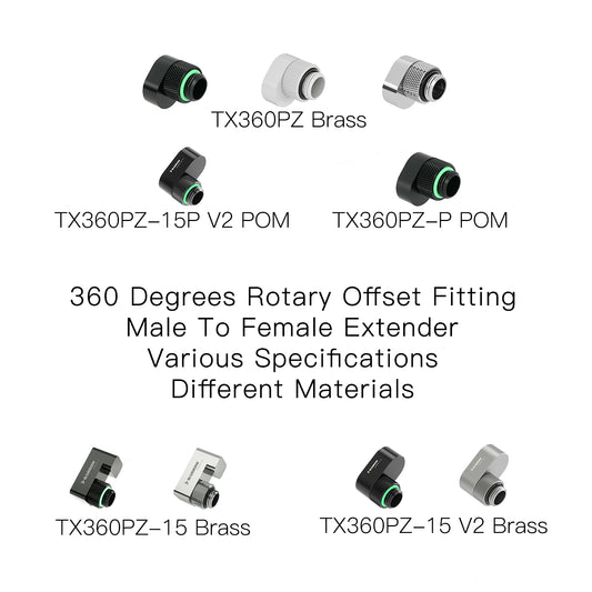 Barrow TX360PZ, raccords décalés rotatifs à 360 degrés, raccords d'extension G1/4 6 mm mâle à femelle