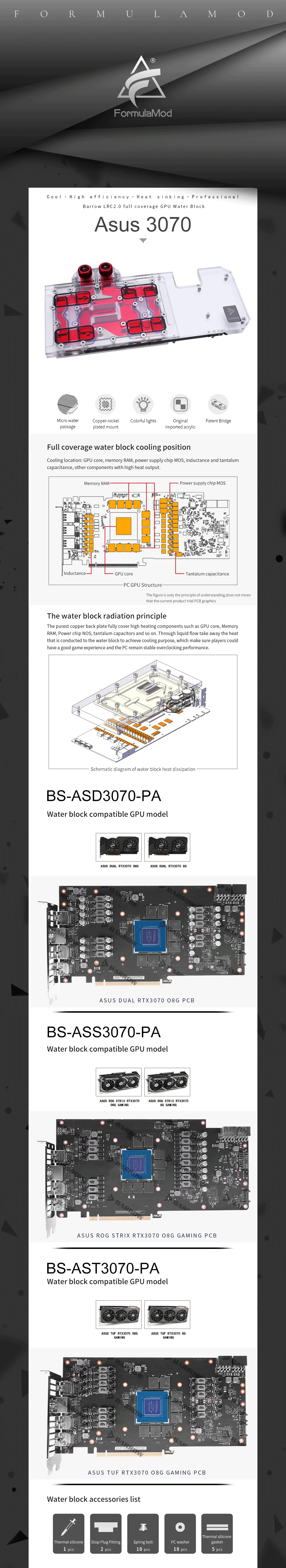 Bloc de refroidissement par eau GPU Barrow 3070 pour carte graphique ASUS RTX3070, refroidisseur A-RGB à couverture complète, BS-ASS3070-PA BS-ADS3070-PA