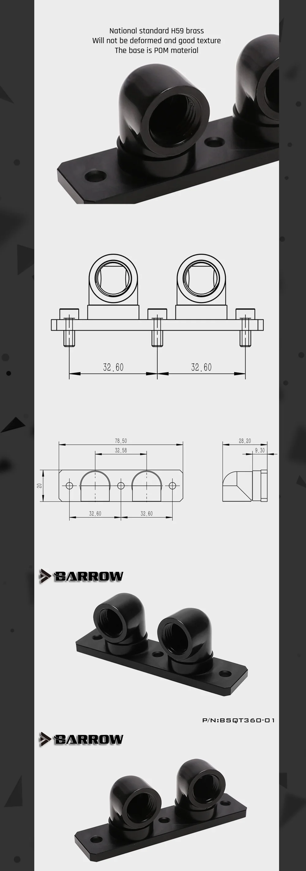 Barrow BSQT360-01, pont rotatif à 360 degrés pour bloc GPU Barrow, avec changement de direction à 90 degrés