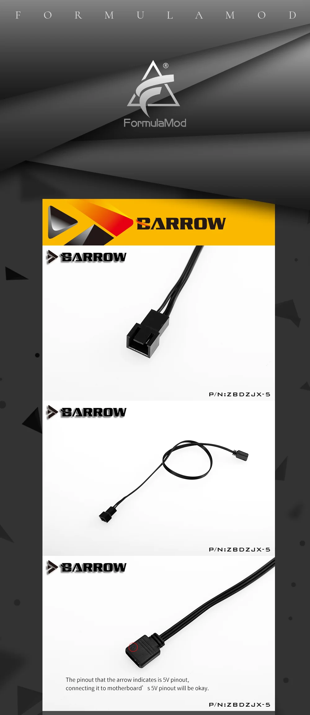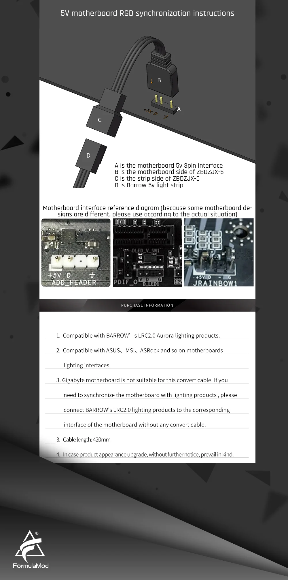 Câble de synchronisation de carte mère de brouette ZBDZJX-5 pour la bande d'éclairage de brouette 5 v adaptée à l'interface de la carte mère 5 v 3pin