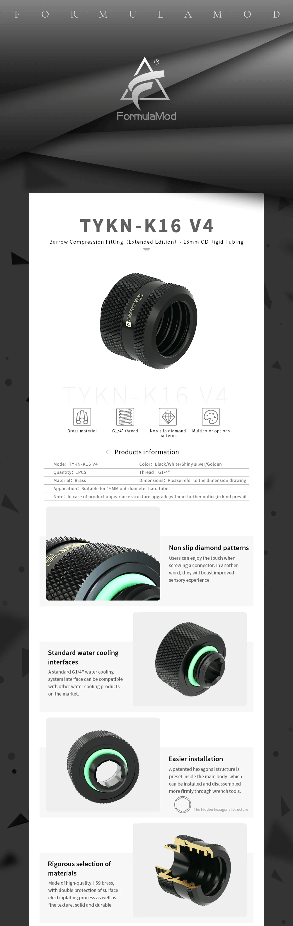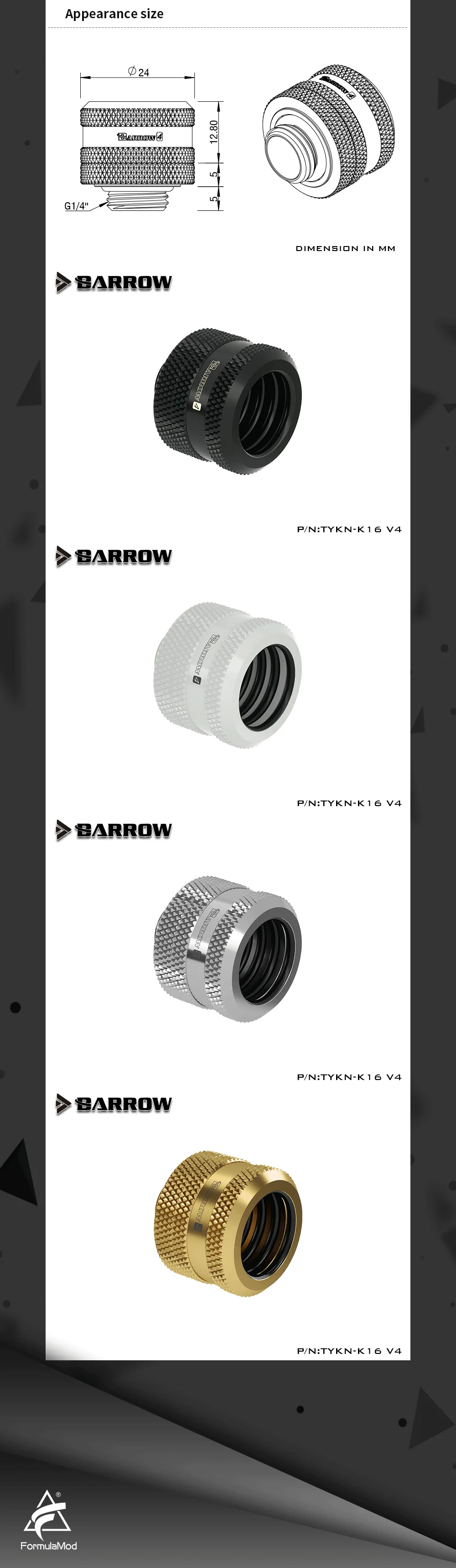 Barrow TYKN-K16 V4, raccords pour tubes durs OD16mm, adaptateurs G1/4 pour tubes durs OD16mm