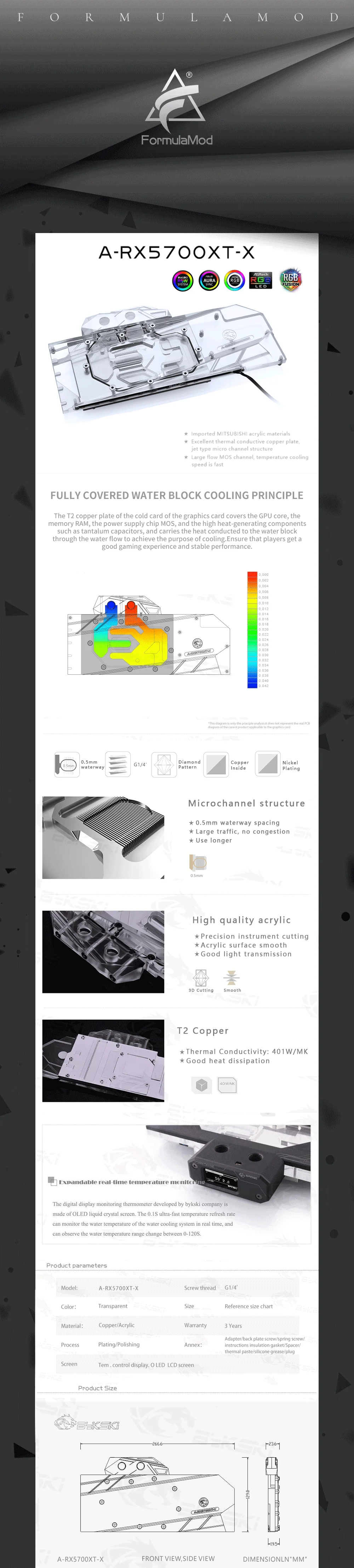 Bykski A-RX5700XT-X, bloc de refroidissement par eau de carte graphique à couverture complète, pour AMD Founder Edition Radeon RX 5700 XT/ RX 5700