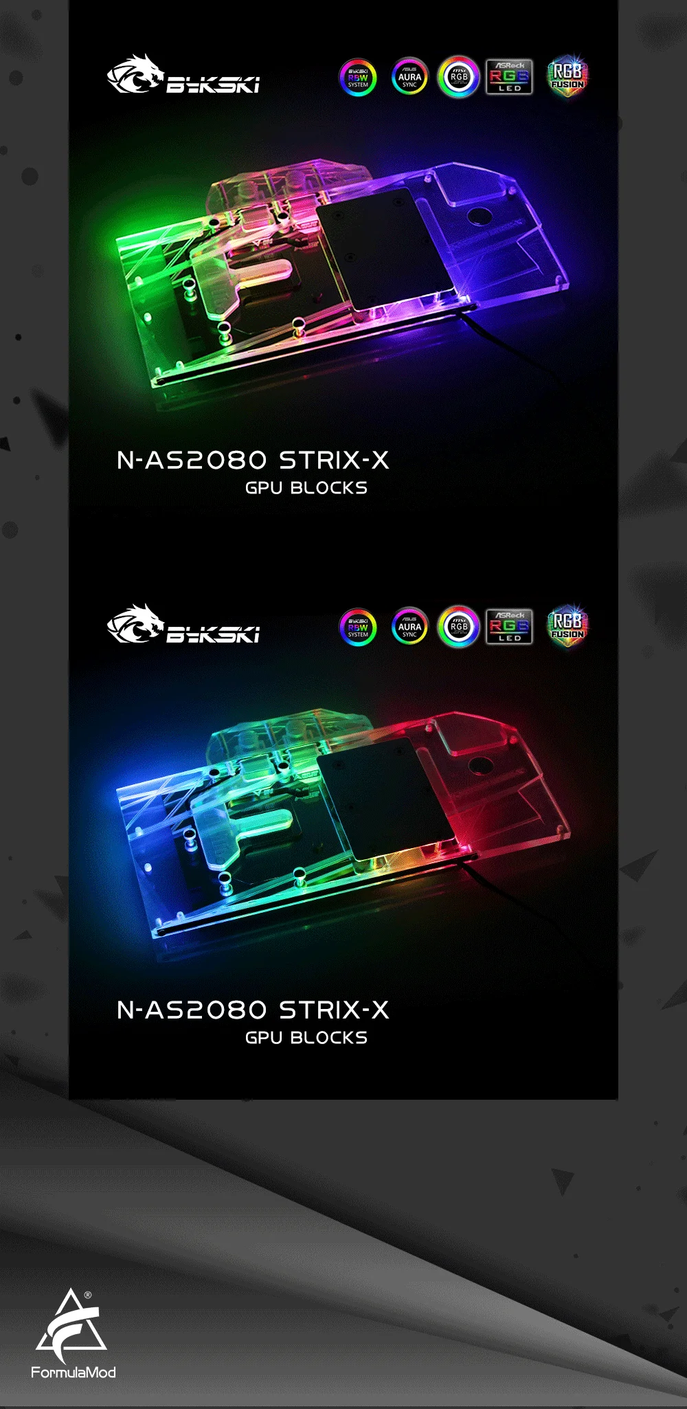 Bykski N-AS2080STRIX-X, bloc de refroidissement par eau de carte graphique à couverture complète, pour Asus Rog Strix-RTX2080-O8G-Gaming