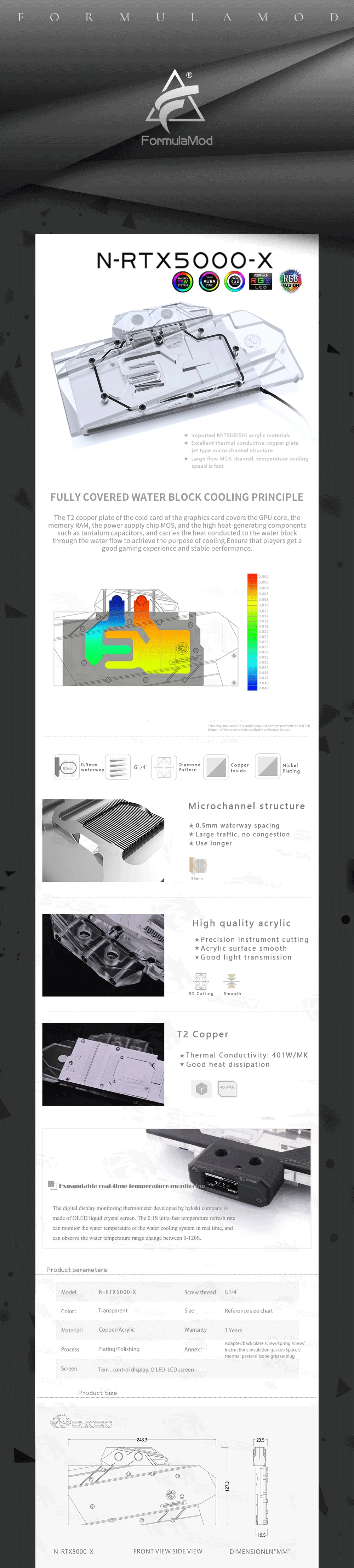Bykski N-RTX5000-X, bloc de refroidissement par eau de carte graphique à couverture complète, pour Leadtek RTX5000/RTX8000