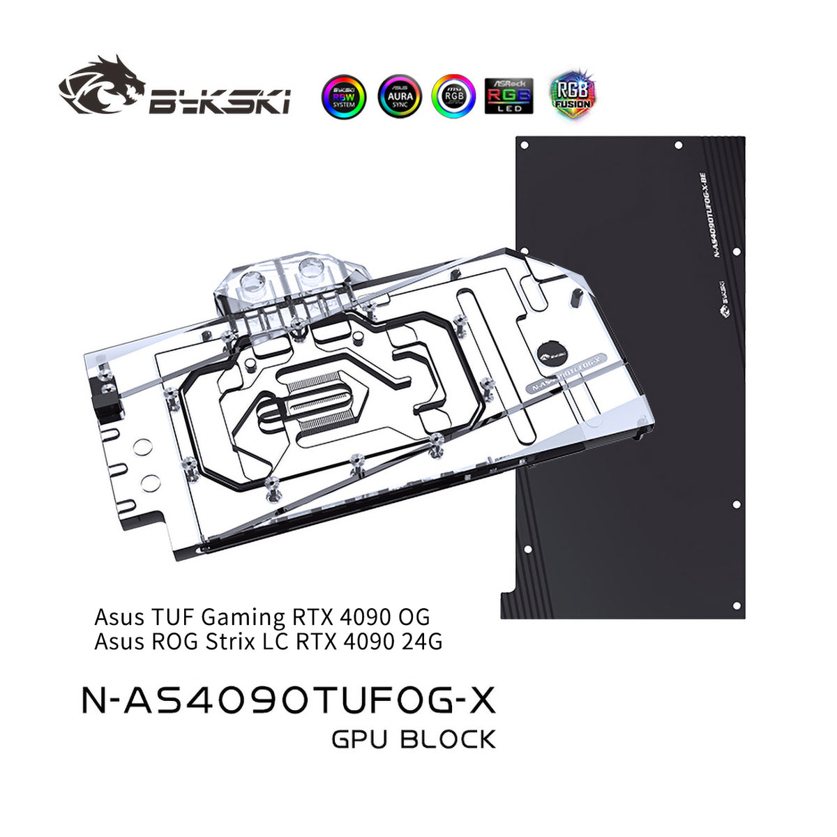 Bykski GPU Water Block For Asus TUF Gaming RTX 4090 OG / ROG Strix LC RTX 4090 24G, Full Cover With Backplate PC Water Cooling Cooler, N-AS4090TUFOG-X