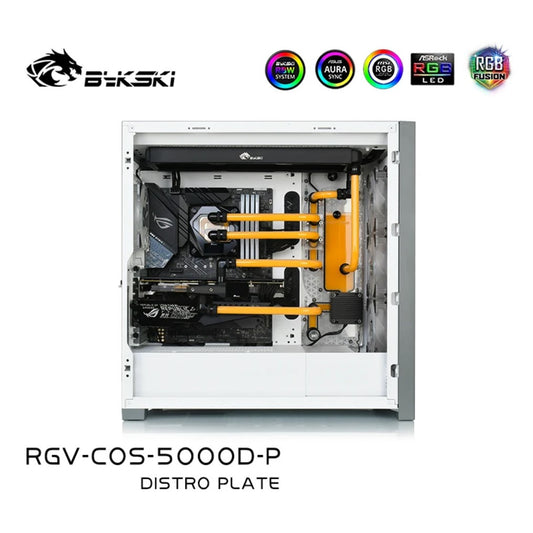 Bykski Distro Plate Kit pour boîtier CORSAIR 5000D, boucle complète 5V A-RGB pour la construction d'un seul GPU PC, carte de voie navigable de refroidissement par eau, RGV-COS-5000D-P