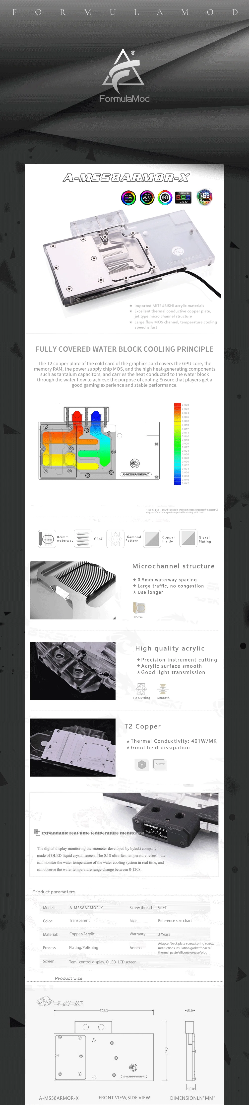 Bykski A-MS58ARMOR-X bloc de refroidissement par eau GPU pour MSI RX 580 armure système de Dissipation thermique des composants informatiques