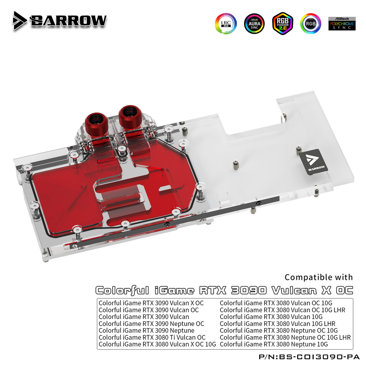 Barrow 3080 3090 GPU Water Block For Colorful iGame RTX 3080 3090 Vulan X OC, Full Cover ARGB GPU Cooler, BS-COI3090-PA
