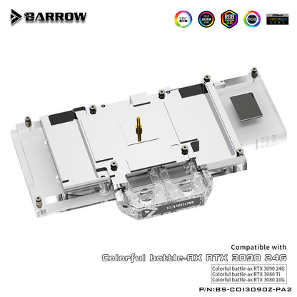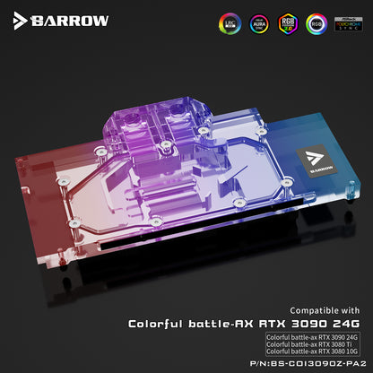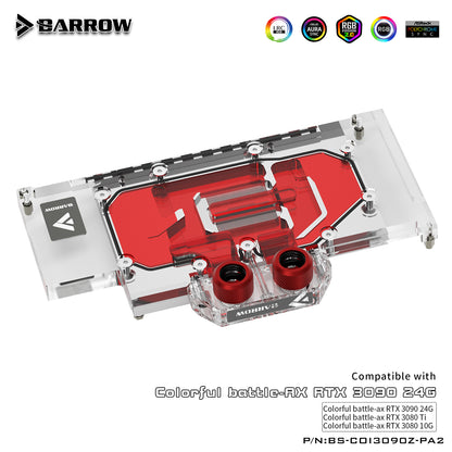Barrow 3090 3080 GPU Water Block For Colorful BATTLEAX 3090/3080, Full Cover 5v ARGB GPU Cooler, BS-COI3090Z-PA2