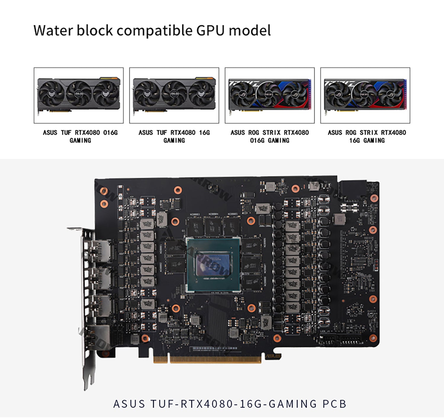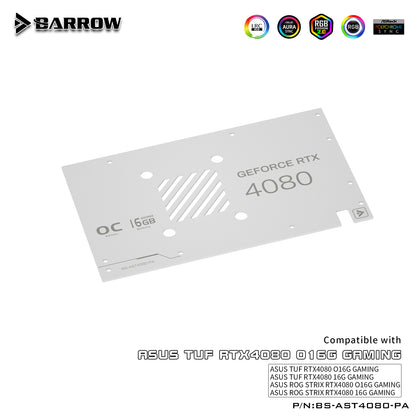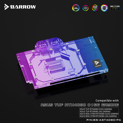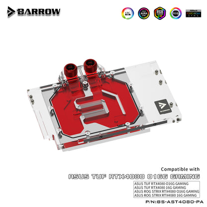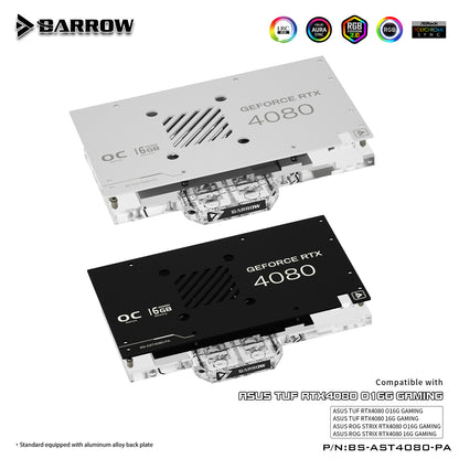 Barrow GPU Water Block For Asus Tuf / Rog Stirx RTX 4080 Gaming , Full Cover With Backplate PC Water Cooling Cooler, BS-AST4080-PA