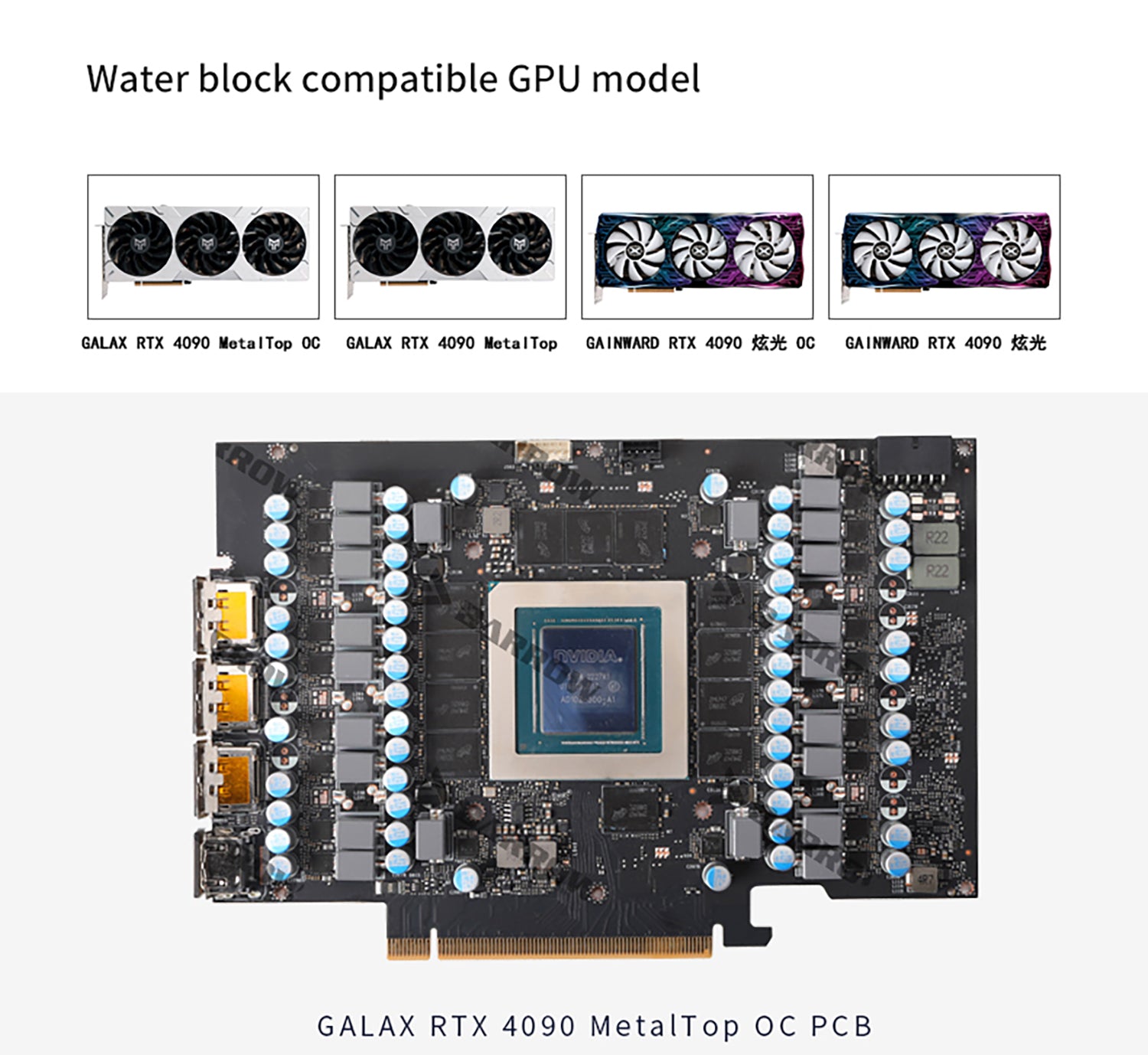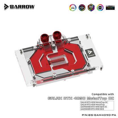 Barrow GPU Water Block For Galax RTX 4090 MetalTop OC GPU Card Full Cover Water Cooler , With Backplane BS-GAM4090-PA