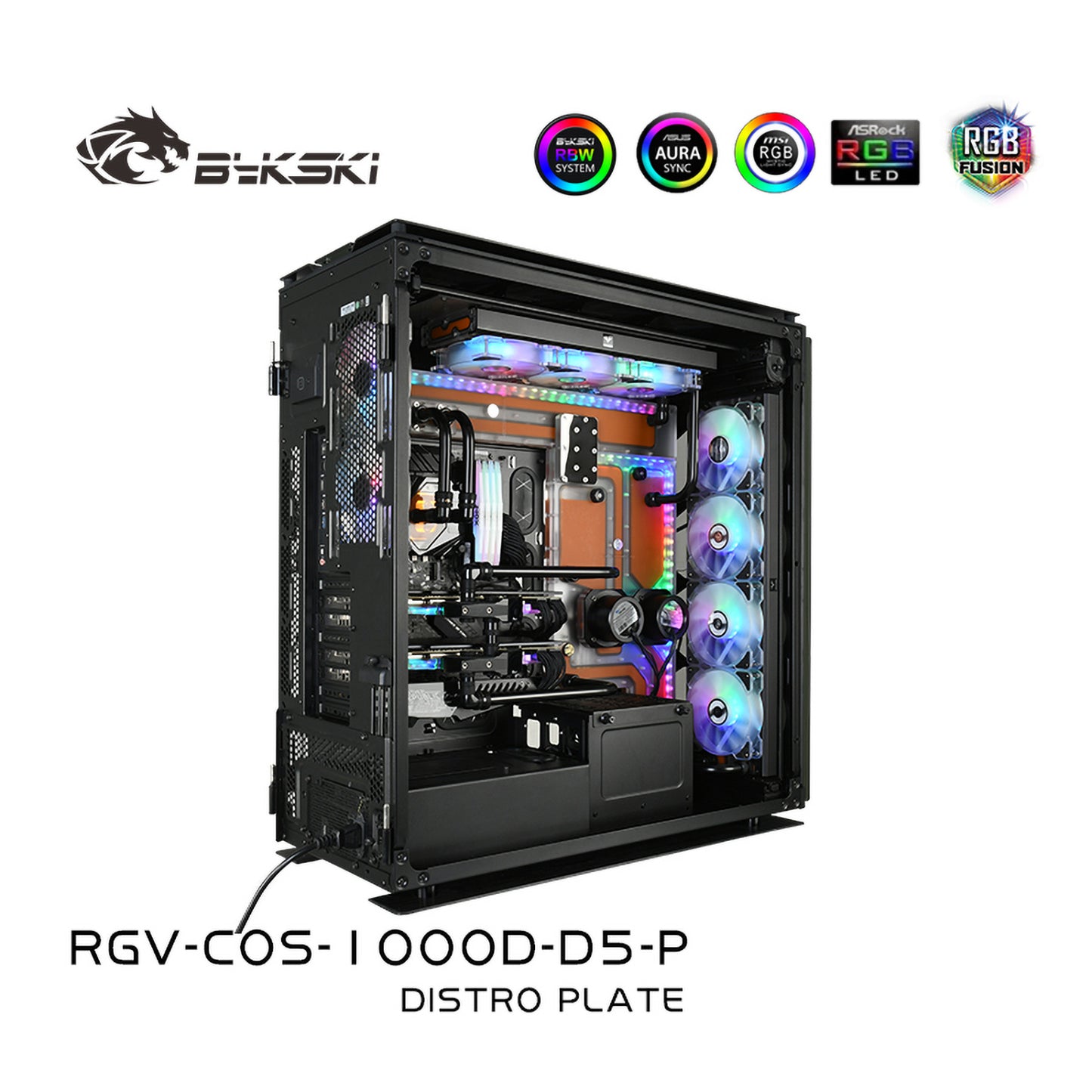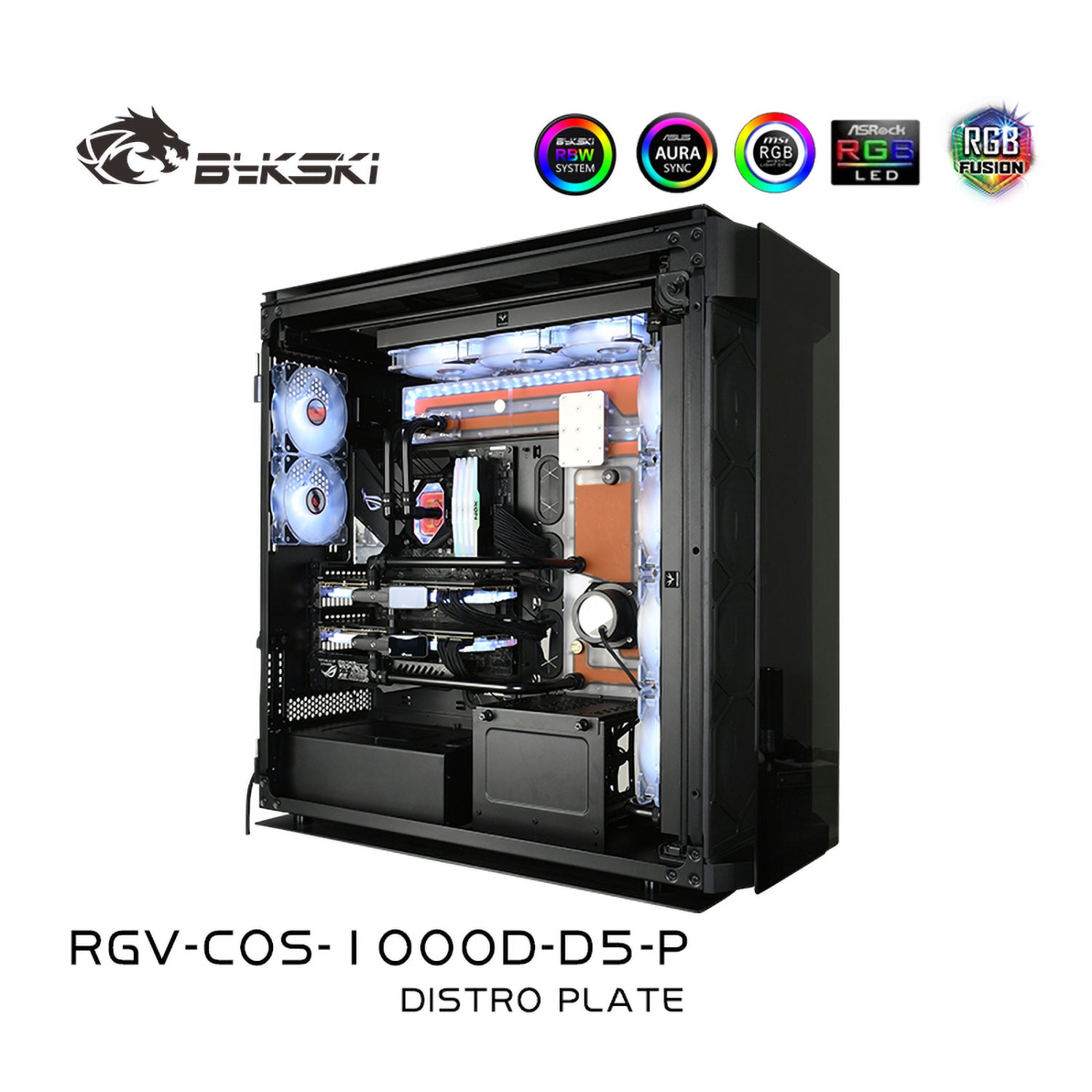 Bykski Distro Plate Kit For Corsair 1000D Case, 5V A-RGB Complete Loop For Single GPU PC Building, Water Cooling Waterway Board, RGV-COS-1000D-D5-P