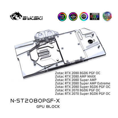 Bykski Full Cover Graphics Card Water Cooling Block For Zotac RTX 2080/2080Super PGF OC12, 2070 PGF, N-ST2080PGF-X