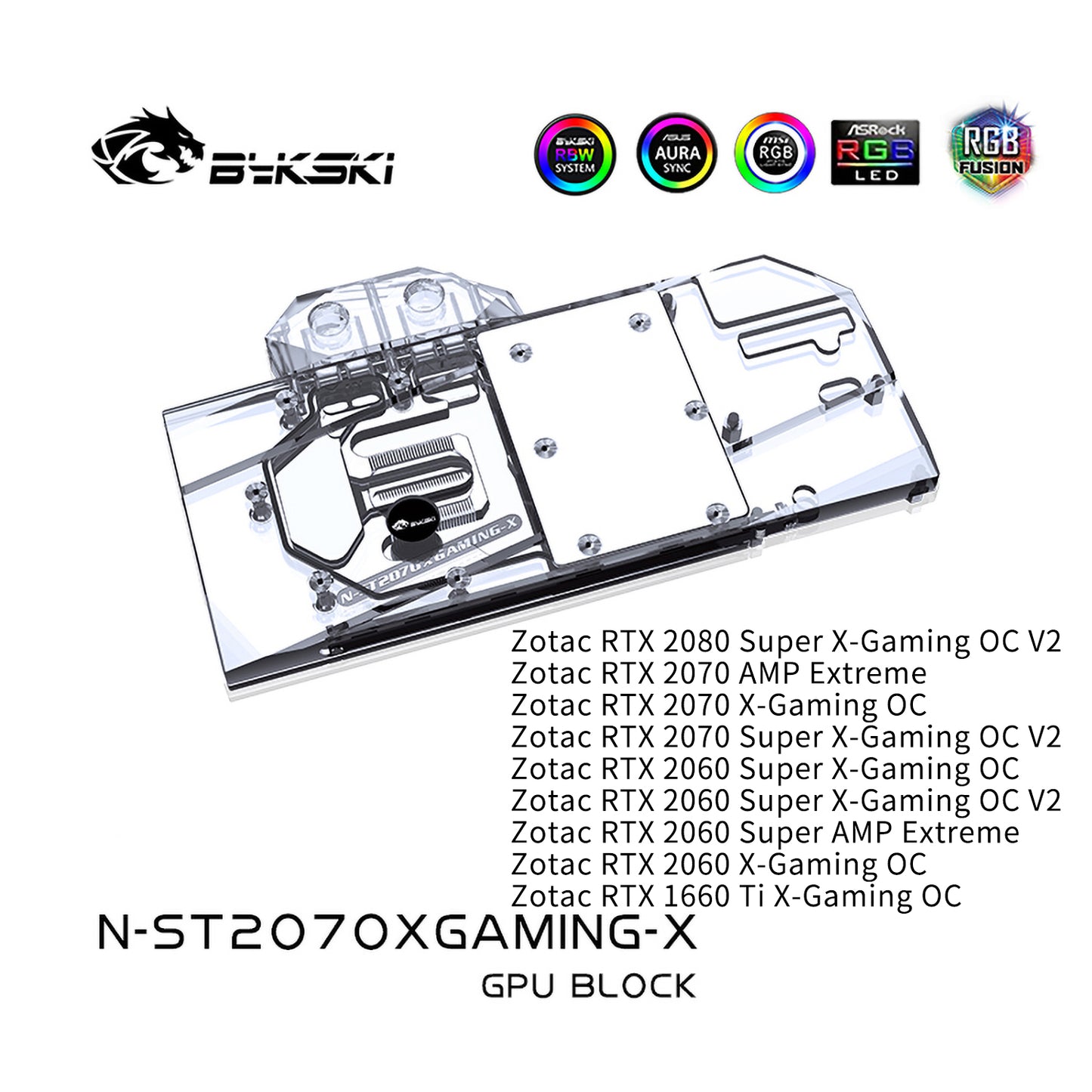 Bykski Full Cover Graphics Card Water Cooling Block, For Zotac RTX 2080Super/2070/2070Super/2060Super/1660Ti X-Gaming/AMP Extreme, N-ST2070XGAMING-X