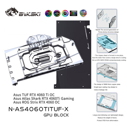 Bykski GPU Water Block For Asus RTX 4060 Ti TUF / Atlas Shark / ROG Strix , Full Cover With Backplate PC Water Cooling Cooler, N-AS4060TITUF-X