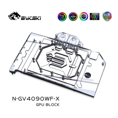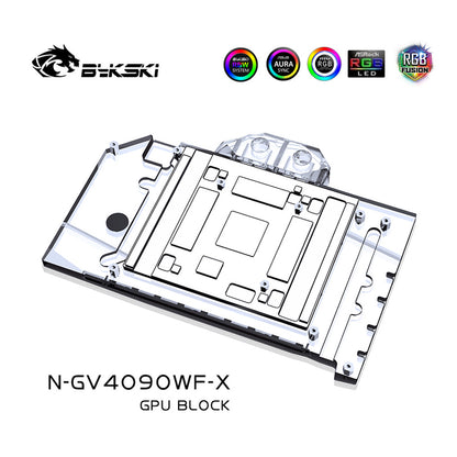 Bykski GPU Water Block For Gigabyte RTX 4090 Windforce / Aorus RTX 4090 Xtreme Waterforce, Full Cover With Backplate PC Water Cooling Cooler, N-GV4090WF-X