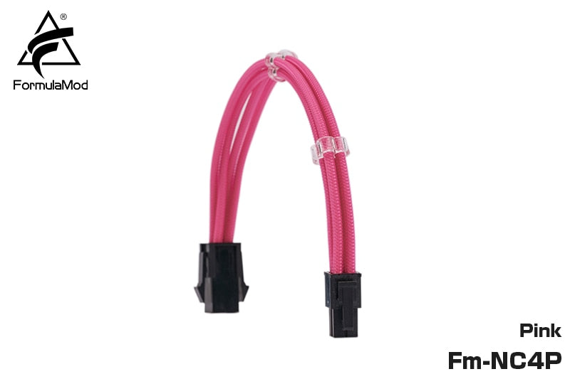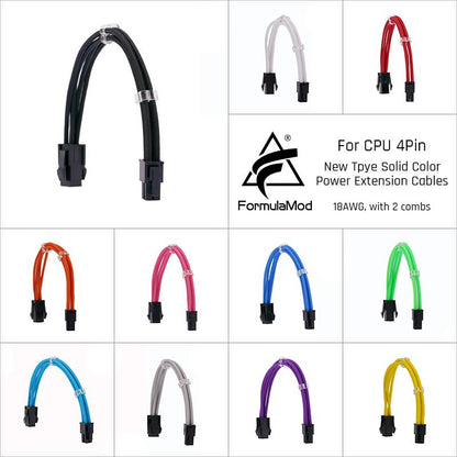 FormulaMod Fm-NC4P CPU 4Pin Power Extension Cable For Motherboard 4 Pin 18AWG Solid Color Extension Cables With Cable Comb