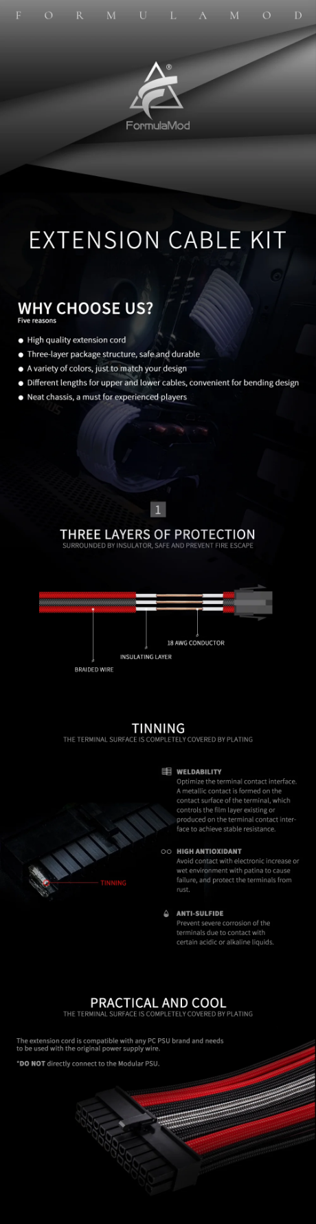 Please feel free to contact us for wholesale discounts. We are a manufacturer of self-produced brands, with many years of experience in operating computer accessories, shipped to international countries around the world, with excellent reputation and strict quality control. If you are also like us, with your own business market, want to expand the business of computer cable wire accessories, welcome to contact us at any time [customerservice@formulamod.com].